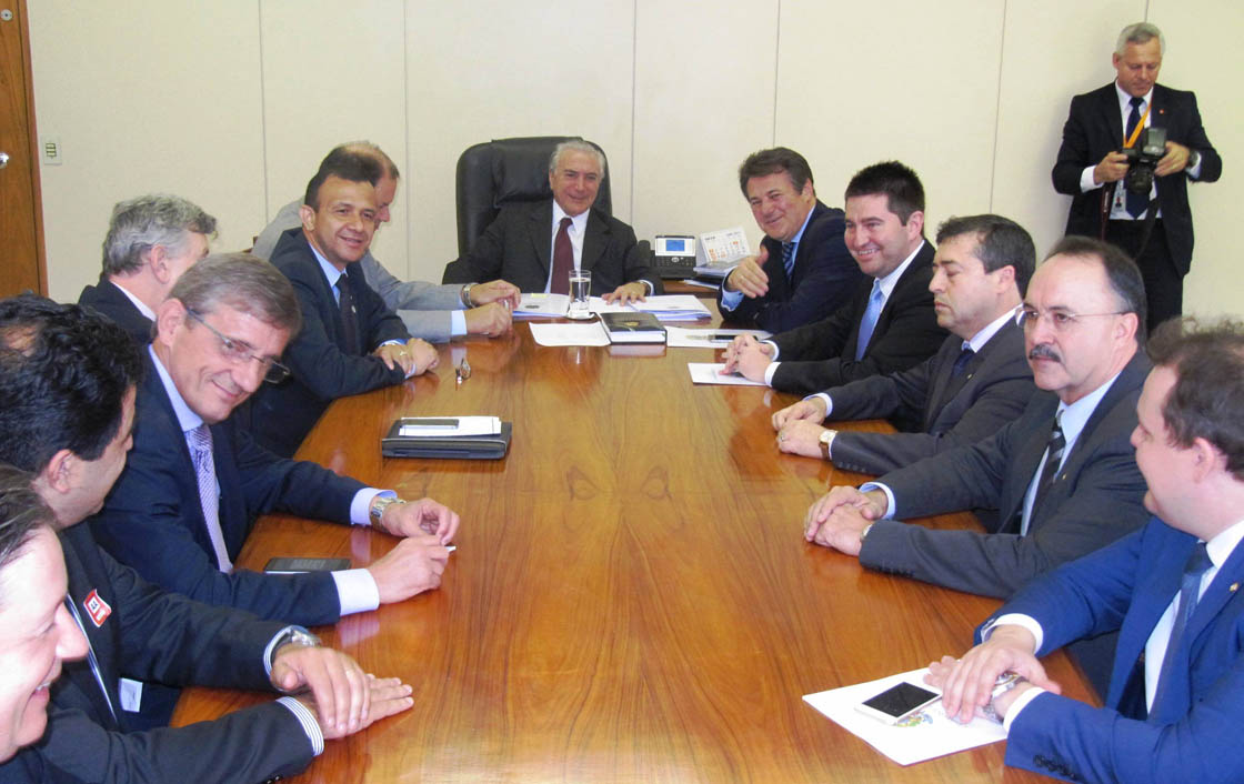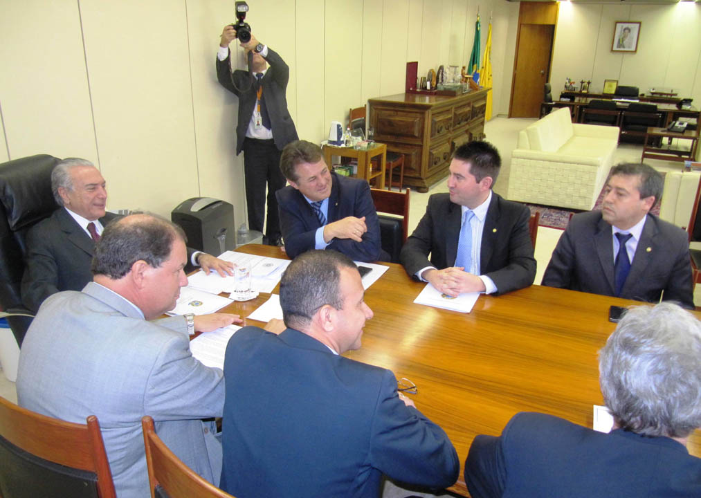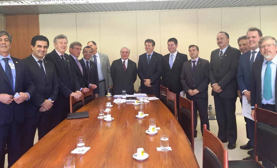 Coordenada pelo deputado federal Giovani Cherini (PDT/RS), a Bancada Gaúcha no Congresso Nacional se reuniu nesta terça-feira, 26, em Brasília, com o vice-presidente da República, Michel Temer. Na oportunidade, os parlamentares trataram das dificuldades enfrentadas na área da saúde no Rio Grande do Sul.